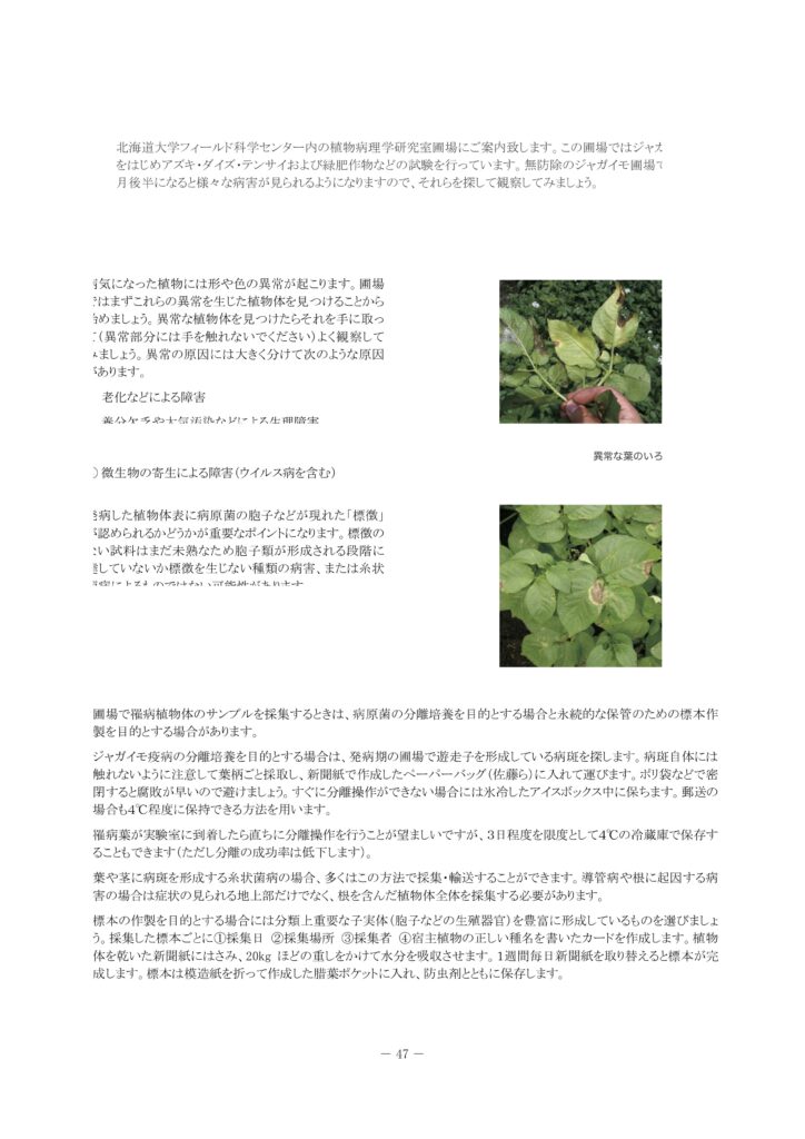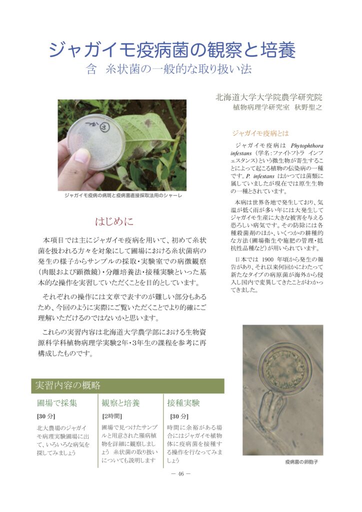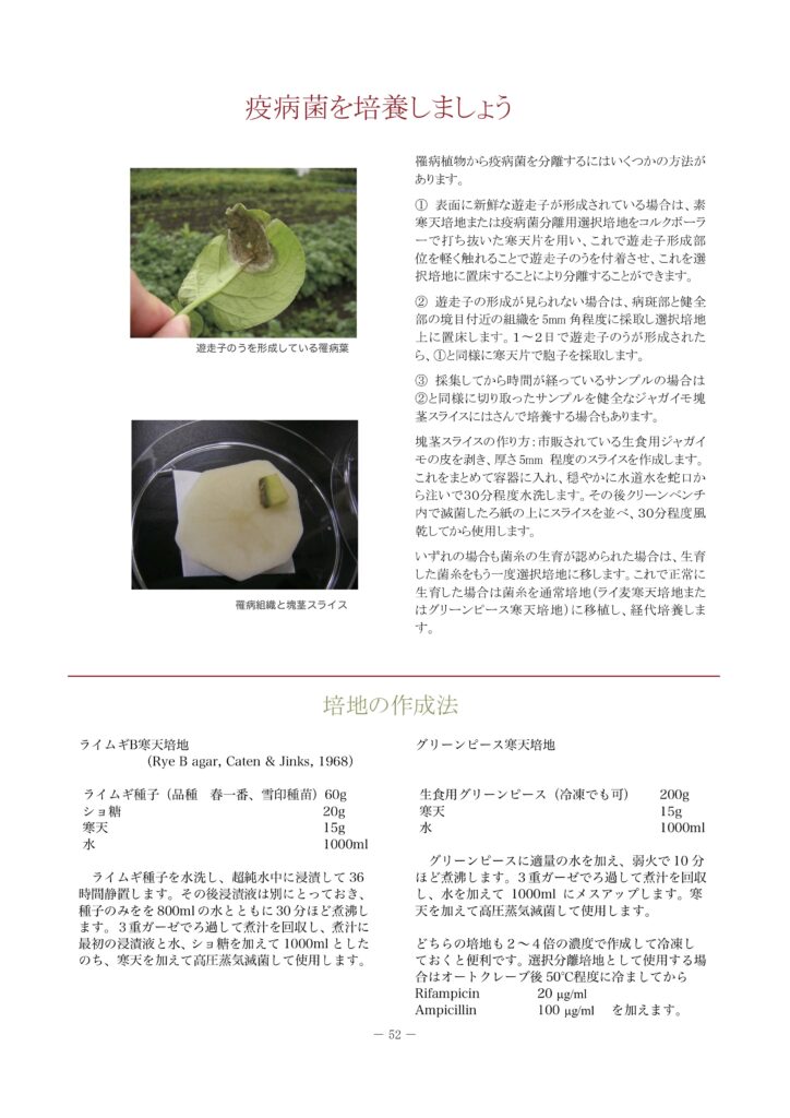 ここでは、私たちの研究室で行なっているジャガイモ疫病関係の研究の一部を紹介します